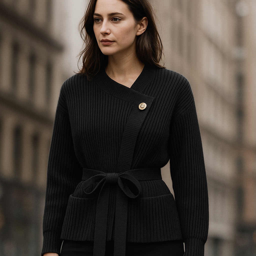 Inspired by the quiet sophistication of Parisian ateliers, this piece is handcrafted in Egyptian cotton, celebrated as the finest cotton in the world. The ribbed knit drapes like a gentle embrace, wrapping you in warmth, softness, and an almost weightless comfort you’ll never want to take off.