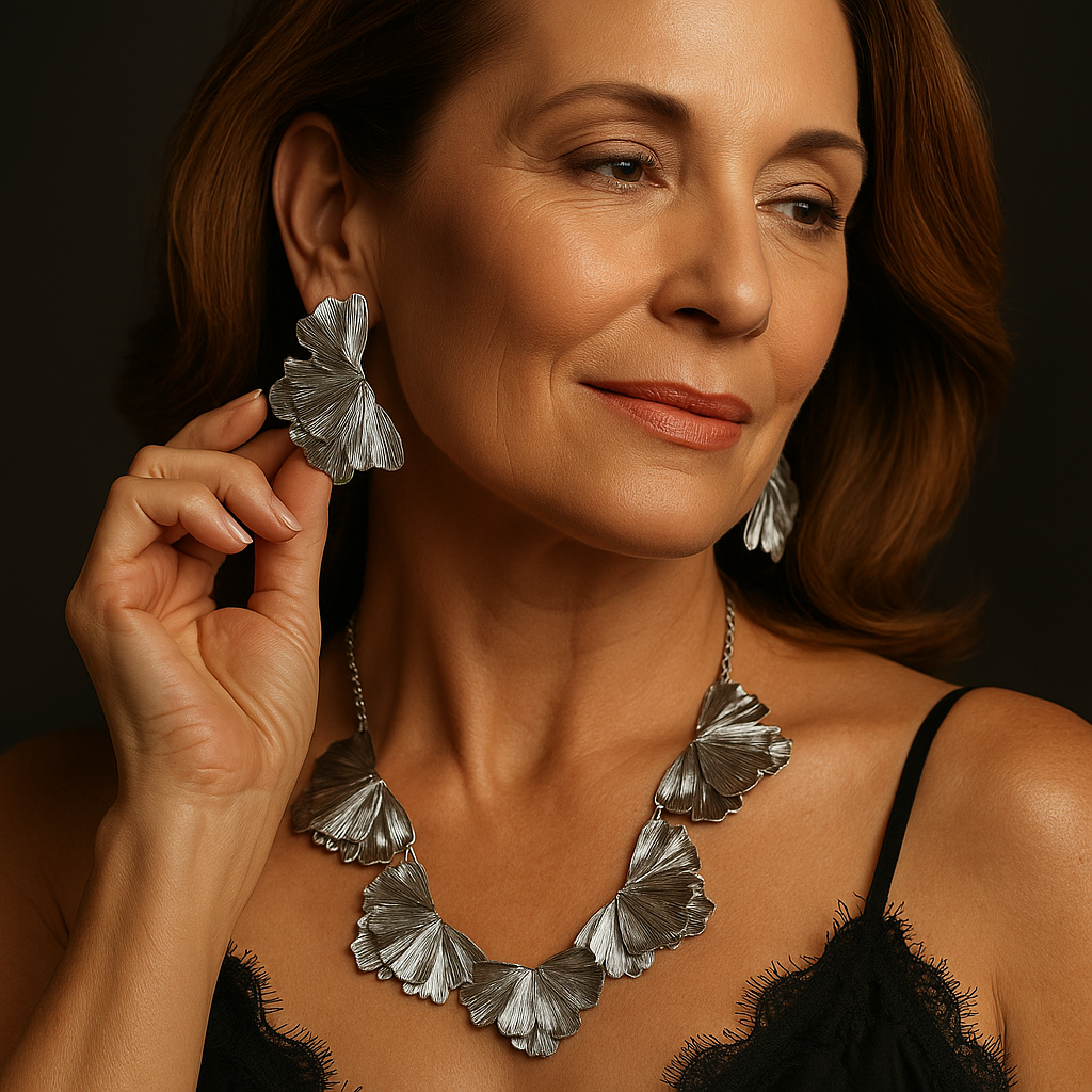 Inspired by the ginkgo leaf, a symbol of resilience and eternal beauty, this set captures nature’s poetry in wearable form. Each sculpted petal radiates strength, grace, and legacy.