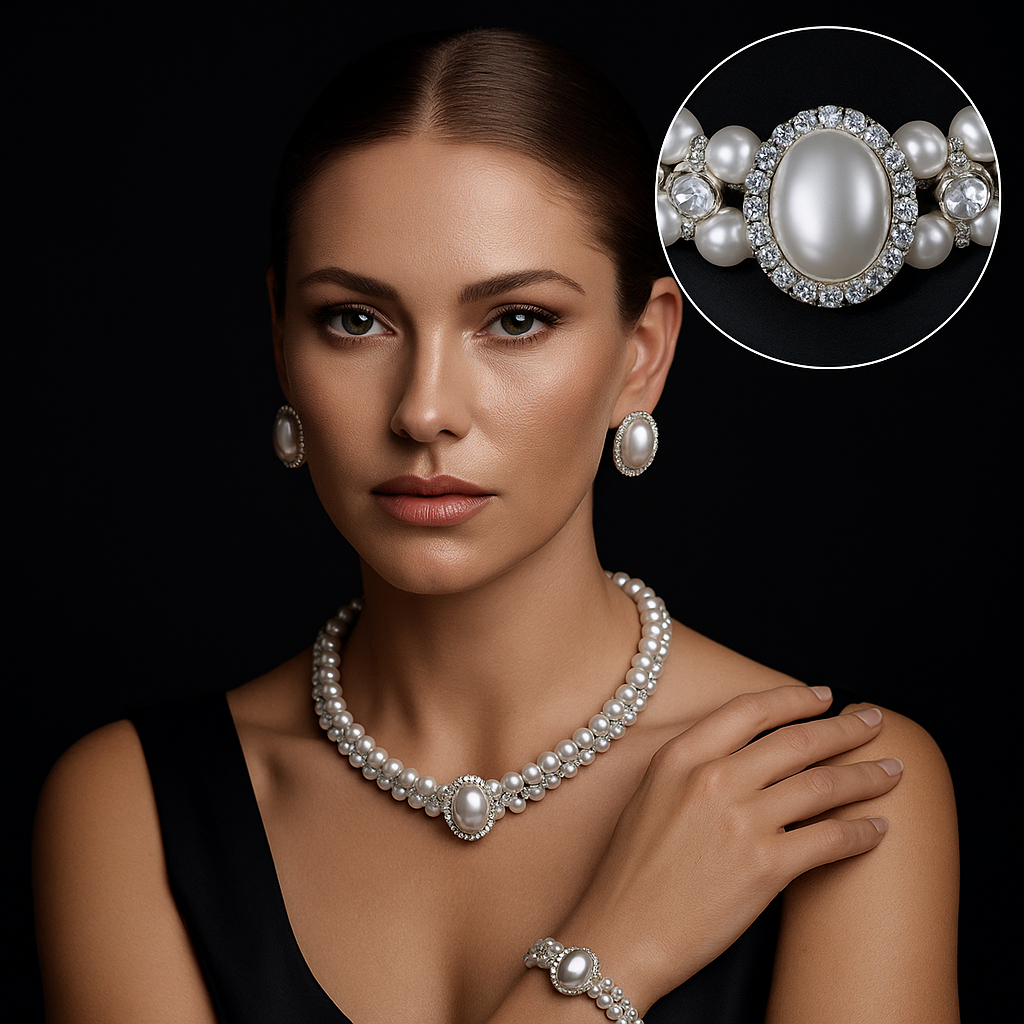 Crafted with signature Akoya pearls sourced from Japan and framed with brilliant crystal-cut stones, this set brings a clean, modern elegance to any outfit. Designed to feel as beautiful as it looks, each piece is lightweight, comfortable, and made for women who love premium quality without the heavy feel.