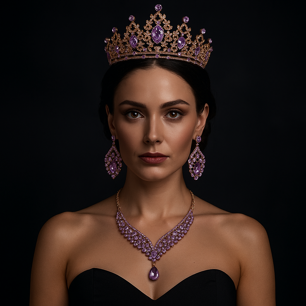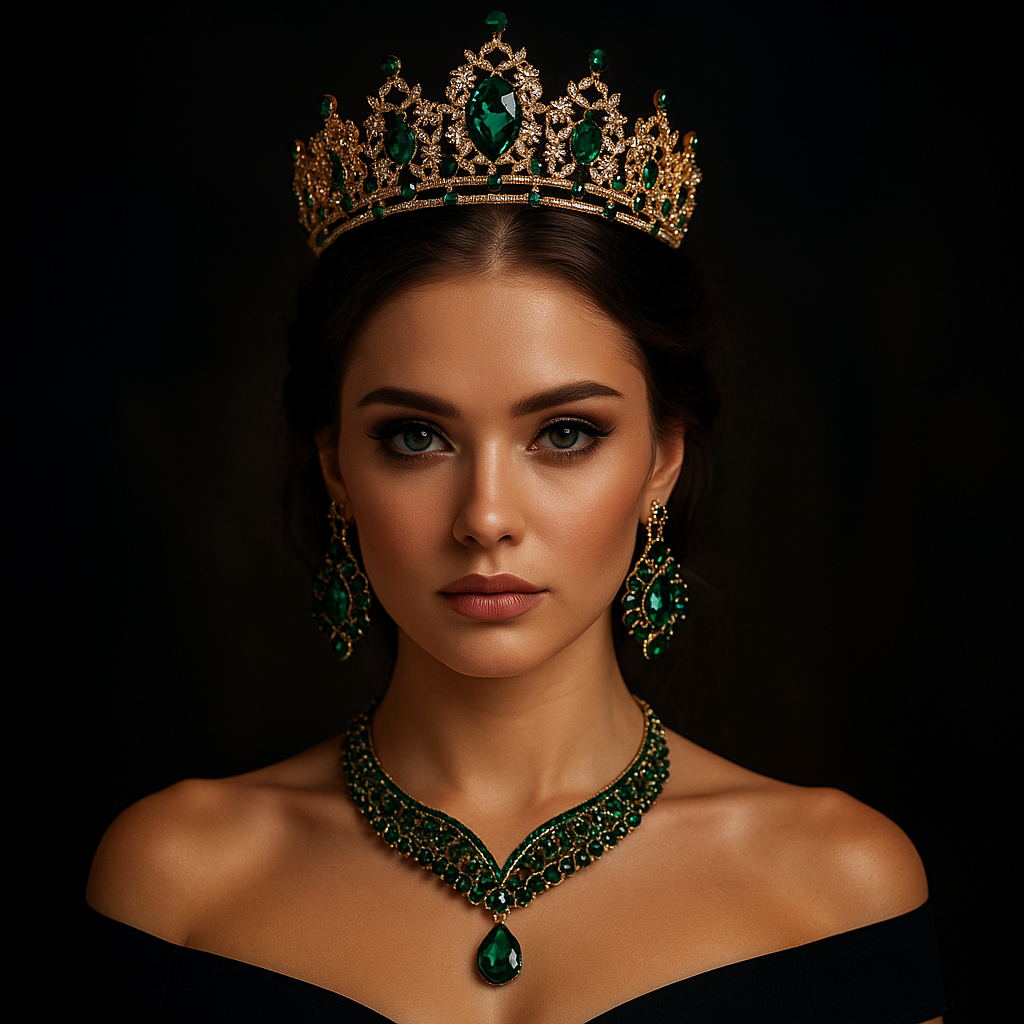 Forged in the ateliers of Europe’s royal houses, this regalia set is adorned with stones sourced from the highlands of Burma and volcanic mines of Brazil, each gem cut to mirror the fire of a monarch’s crown.