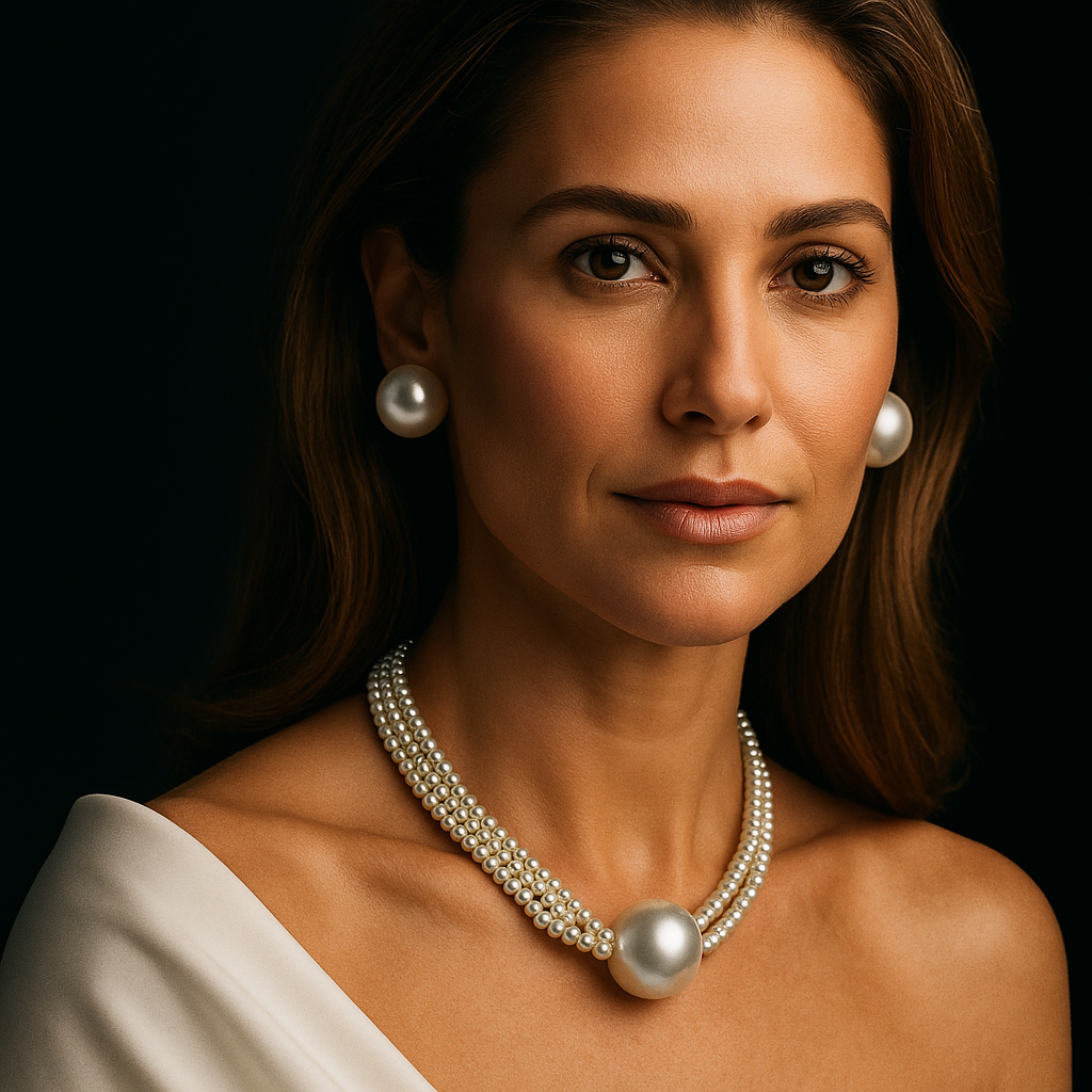 Crafted with signature Akoya pearls from Japan, this statement set captures timeless elegance in its purest form. The bold centre pearl and triple-strand silhouette create a refined, heirloom-worthy look for every occasion.
